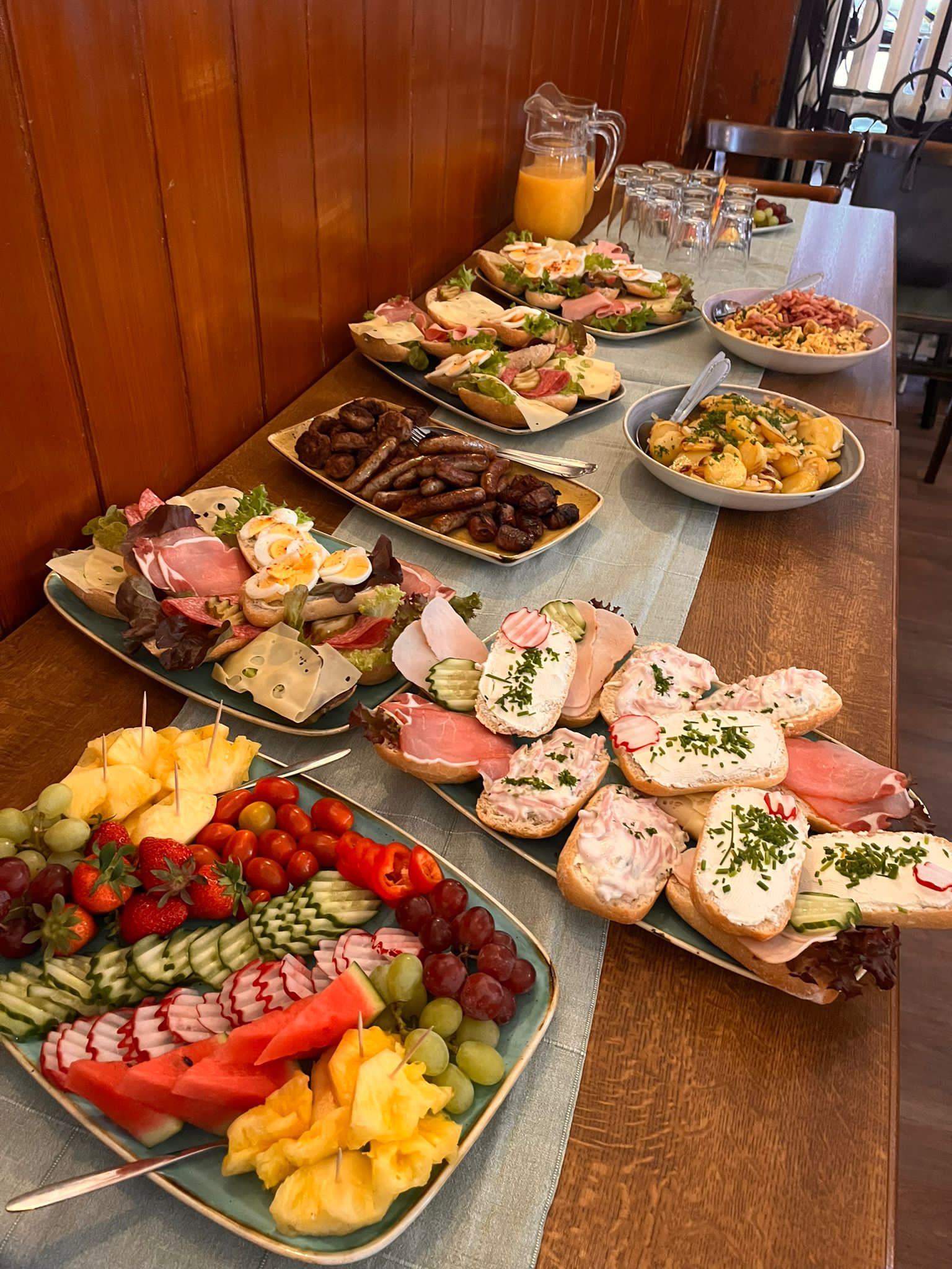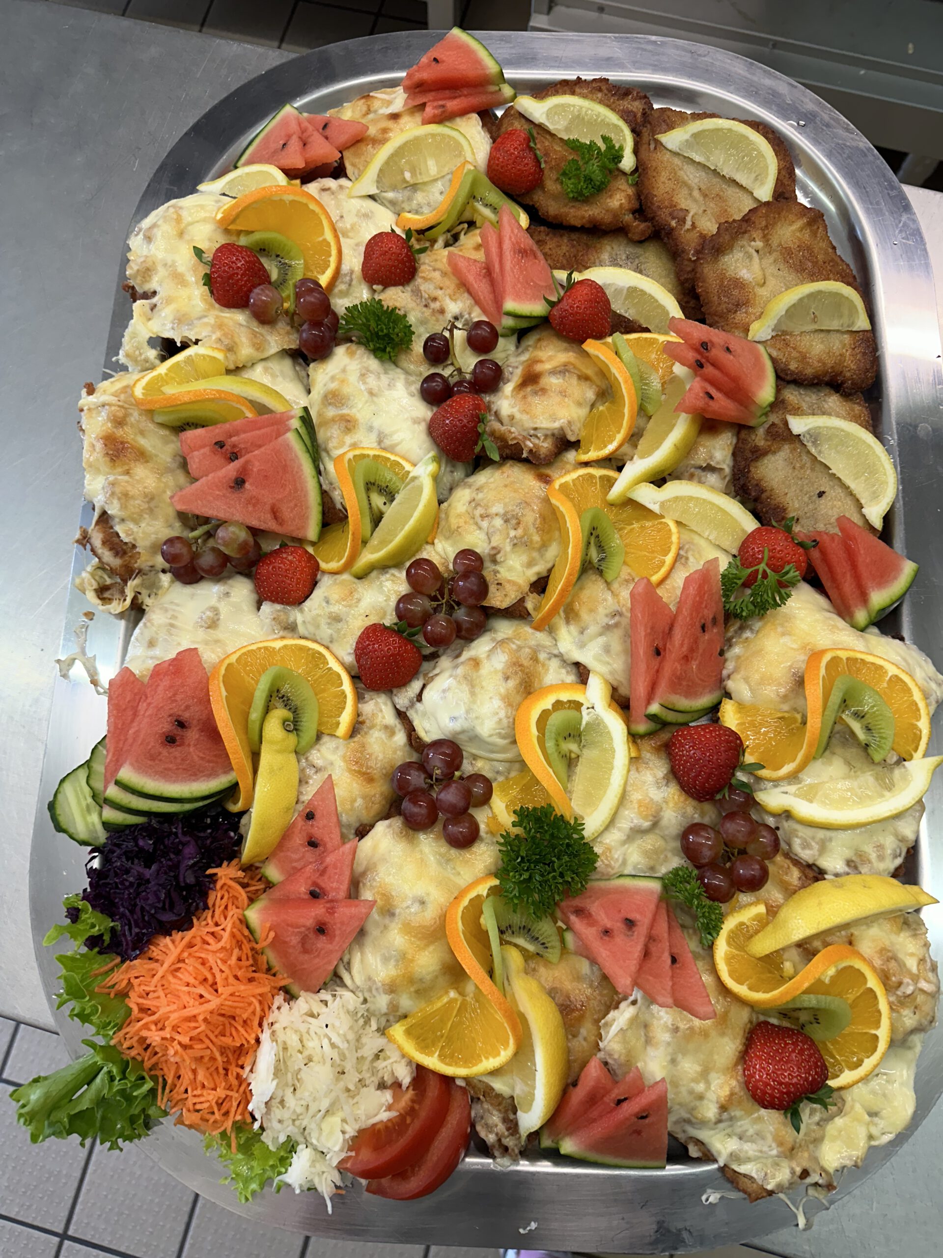 pro Person servieren wir 2 Schnitzel und eine Salatbeilage. Beilage Bratkartoffel, Pommes frites oder Kroketten. Platten zum selber zusammenstellen für Personenanzahl Ihrer Wahl: